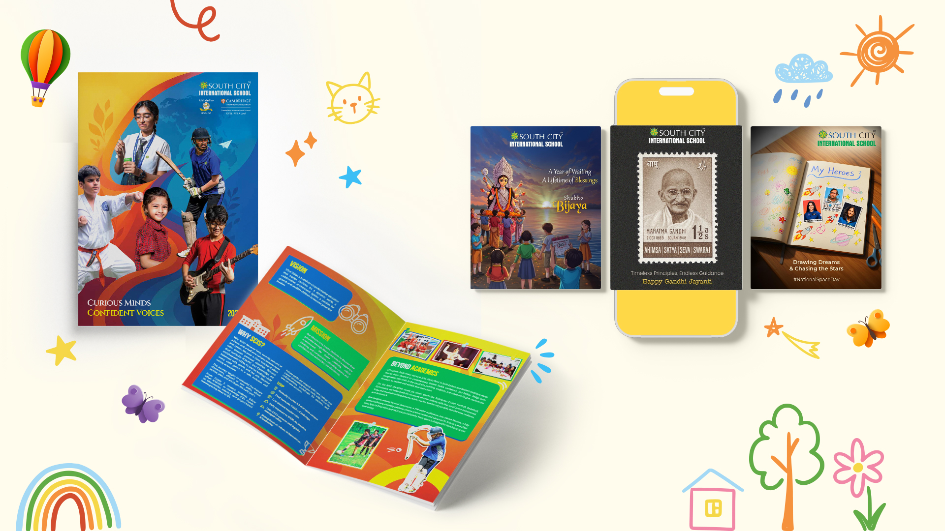 Andreal had the privilege of designing the 2023-24 prospectus for South City International School, encapsulating the essence of the institution’s vision and values. The prospectus was designed to engage prospective parents and students with vibrant, dynamic visuals that reflect the school’s diverse offerings and academic philosophy. Through bold imagery and clear content, we showcased the school’s core areas, including vision, mission, and extra-curricular activities, reinforcing South City’s reputation as a leader in education.